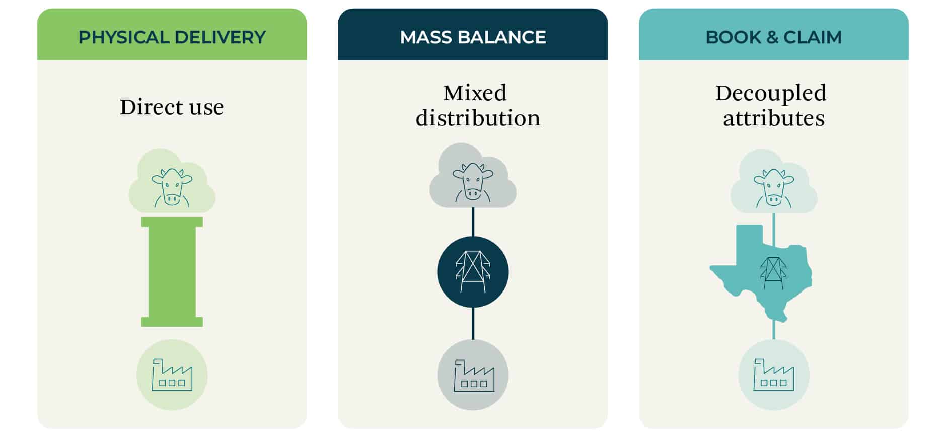 - Book-and-claim: certificates (RTCs/GoOs) are decoupled from your gas and purchased separately