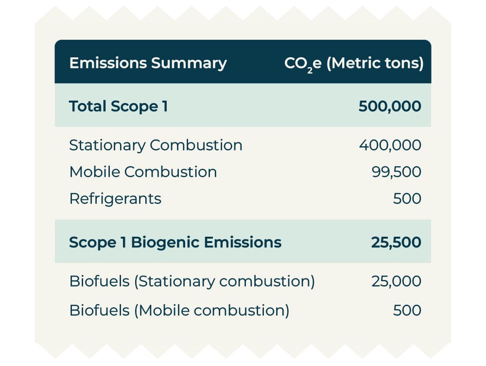 In order to calculate emissions from biomethane, calculate combustion emissions similarly to how you would for conventional natural gas by multiplying fuel usage by the appropriate RNG emission factor. The difference comes when a company combusts biomethane in its own operations, the direct CO₂ emissions are considered “biogenic” and must be reported separately as its own line item rather than grouped with fossil fuel emissions. Other combustion emissions from RNG (like methane) are still reported as normal within scope 1.